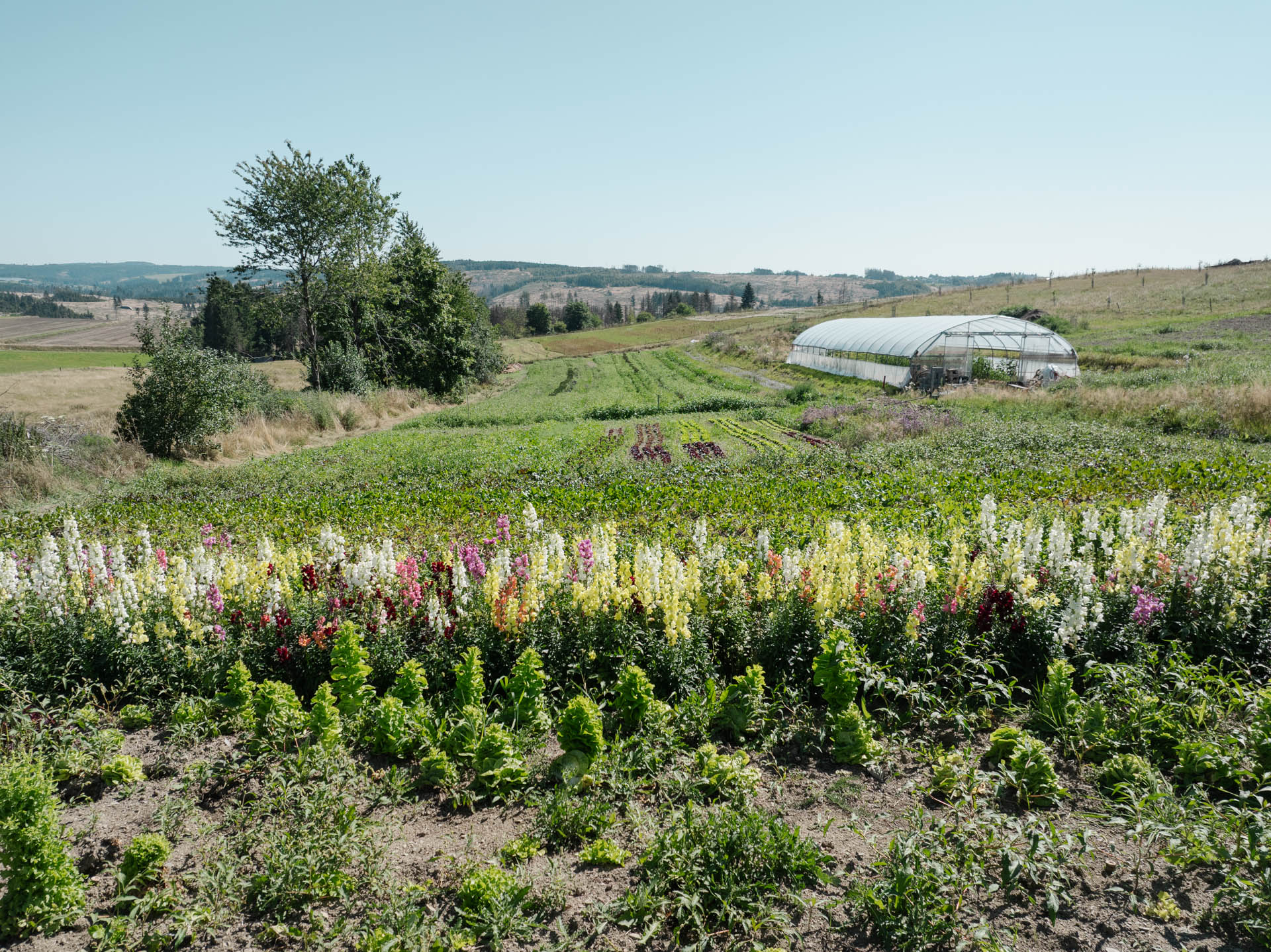 Auf unserem Hof wächst eine große Vielfalt an Gemüse wie Salate, Tomaten, Kartoffeln sowie Kräuter und Blumen. Streuobstwiesen, wilde Ecken und diverse Blumenbeete für Nützlinge bilden die Basis unserer Vielfalt und sind Nahrungsgrundlage für unsere Bienen.