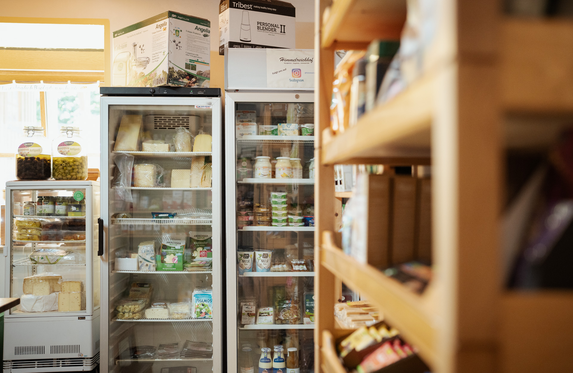 Seit 1990 gibt es unseren Hofladen. Der wird von Beginn an liebevoll von meiner Mutter Marianne geführt. Sie hat sich intensiv mit den Themen Vollwertkost, pflanzliche Ernährung und Rohkost befasst und unser Hofladen bietet neben saisonalen eigenen Produkten daher ein für uns perfektes Angebot für eine gesunde vegetarische Ernährung.
